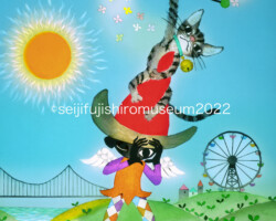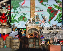 ラ・ビーカフェ店頭でお買い求めいただいた方には、1会計につき1枚、藤城清治のイラスト画を版画にしてお渡し致しております(複製版画/A4サイズ相当)